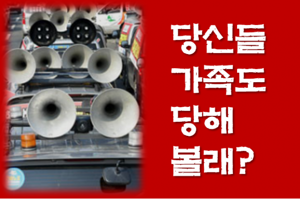 사실 그동안에도 각종 집회의 소음 때문에 선량한 국민이 괴롭힘을 당한 경우가 한둘이 아니었다. 피해자들은 집회 참가자의 집 앞에 밤새 확성기를 틀고 복수하고 싶은 심정일 것이다.