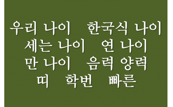 이렇게 우리나라엔 외국인이 모르는 여러가지 나이가 복잡하게 얽혀 있다.