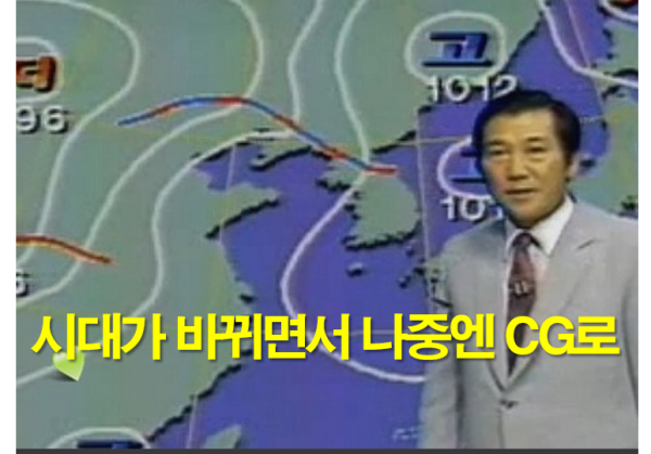 지금의 TV에선 기상캐스터가 출연해 컴퓨터그래픽 영상과 구름사진으로 예보를 하지만, 필자가 어렸을 때 일기예보는 기상대 공보관 발표식이었다. 재미는 물론 볼거리가 없었다.
