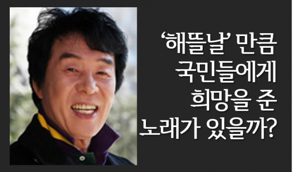 1975년 발표한 ‘해뜰날’은 당시 사회 분위기와 맞물려 엄청난 호응을 얻었다. 시골에서 무작정 상경한 젊은이들, 암울한 정치 분위기, 노동 약자가 겪는 아픔, 하루하루 벌어 먹고 사는 힘든 삶 등을 보둠는 건 물론, ‘잘살아 보세’라는 구호와 함께 국민들에게 희망을 주는 노래였다.