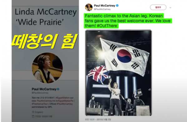 폴 매카트니 역시 떼창에 감격해 SNS에 ‘한국 공연은 최고였다’며 태극기를 흔들던 사진을 게시하기도 했다. (사진)