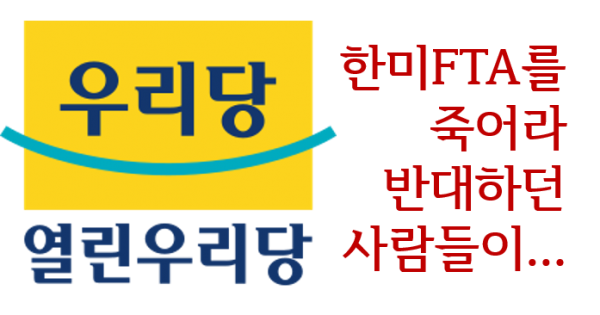 노무현 대통령이 한미FTA를 추진할 당시 여당인 열린우리당 의원들은 극렬히 반대했었다. 한미FTA가 시작되면 우리나라는 미국의 경제 속국이 되고, 농업은 모두 망한다는 식이었다. 노무현 대통령은 “한미FTA는 이념이 아니라 먹고 사는 문제”라는 명언으로 설득했지만, 열린우리당은 결사 반대를 외쳤다. 결국 정권이 바뀌고 나서야 한미FTA가 체결되었다.