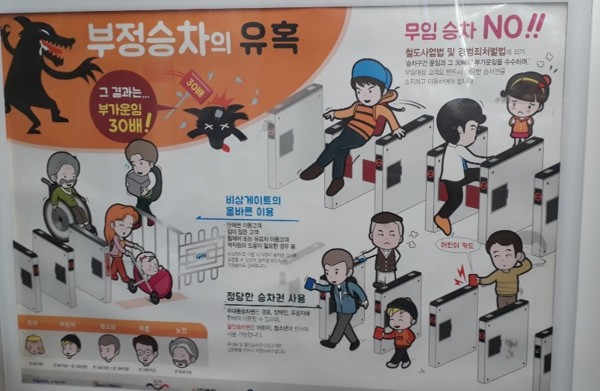 “부정승차를 하지 말라”라는 내용의 일러스트 광고다.