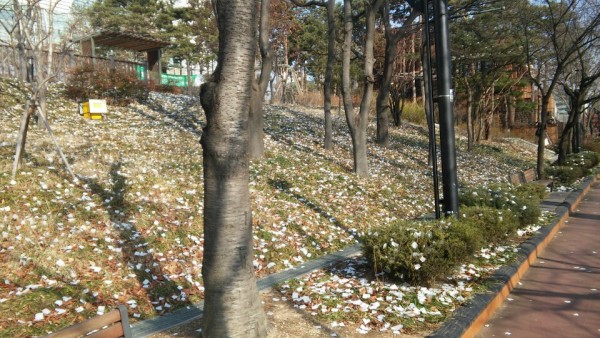 그런데 주거지역은 좀 낫지만 공원의 경우 사진에서 알 수 있듯, 손이나 집게로 일일이 하나하나 집어내지 않으면 안 되는 작업이다. 전체 뿌려진 양만해도 2.5톤이다. 그 비용과 시간을 누가 감당하나? 공원을 방문한 시민들은 계속 눈살을 찌푸려야 한다.