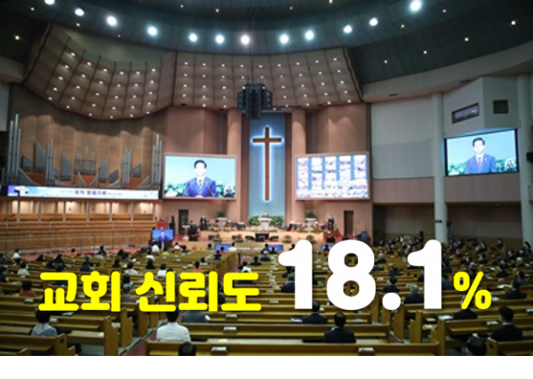 기독교인 중 기독교를 신뢰한다는 비율은 63.5%였는데, 2년 전 조사보다 12.0%포인트 낮아졌다. 비기독교인 중 기독교를 신뢰한다고 답한 비율은 8.8%였다.