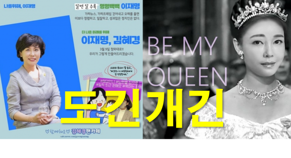 그동안 민주당은 김건희 씨 같은 사람이 대통령의 아내가 되어선 안 된다고 날을 세웠고, 이재명 후보는 아내 김혜경 씨와 같이 유세를 하면서 부부애를 과시해왔다. 아내 리스크를 겪는 윤석열 후보에 빗대기 위해서였을 것이다. 그런데 이젠 도긴개긴이 됐다.
