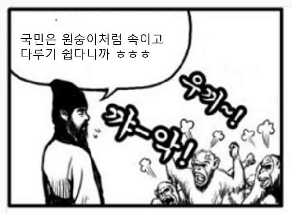조삼모사에서 처럼, 정부가 국민을 ‘원숭이’ 정도로 알기 때문이다.