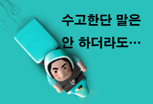고객 : 기사들이 뭔 고생해요. 오토바이 타고 부릉부릉 놀면서 문신하고 음악 들으면서 다니잖아.