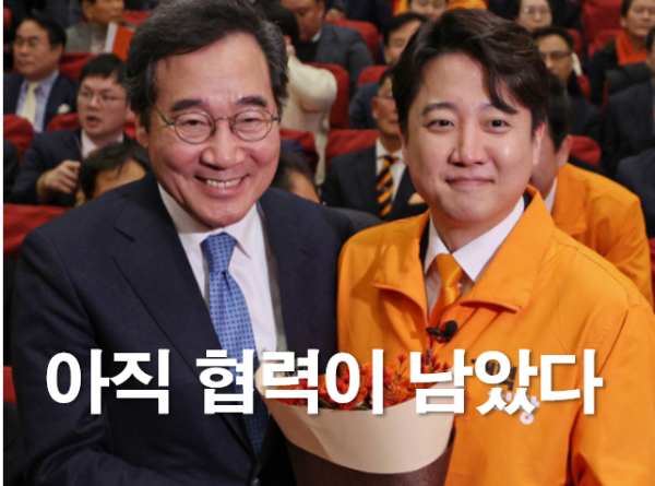 현재 두 정당 모두 지지율이 낮다. 이럴 때 지역구마다 각자 후보를 낸다면 필패일 뿐이다. 따라서 두 정당은 반드시 후보 단일화를 해야 한다. 그래야 한 의석이라도 더 가져갈 수 있다. 특히 영호남 지역에선 후보 단일화도 어렵지 않다. 따라서 더 늦기 전에 지금이라도 후보 단일화에 대한 협상과 협력을 시작해야 한다.