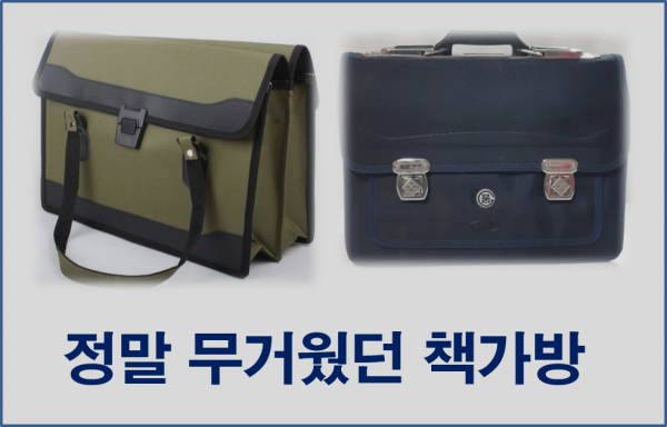 체구가 비교적 작은 중학교 1~2학년 여학생들은 자기 몸 만한 가방을 낑낑거리며 간신히 들고 다니기도 했다. 좀 무거울 땐 아마도 7~8kg 정도는 나가지 않았을까 싶다. 그래도 고3쯤 되면 그 무거운 걸 들고 뛰어다니기도 했으니, 당시 학생들 체력이 지금 학생보다 더 좋았던 것 같다.